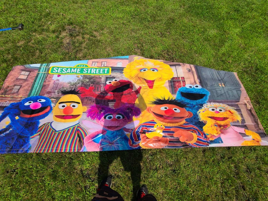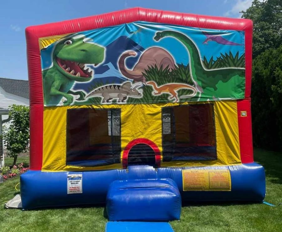 This is our classic modular bounce house with a Paw Patrol banner. It has bright red, yellow, and blue colors that stand out of the crowd. Ask about our removable banner options.