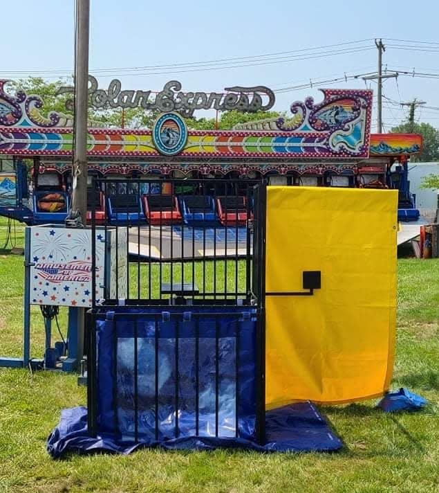 Our portable Dunk Tank consists of rugged vinyl liner with window and holds approximately 450 gallons of water. Unlike the Barrel Dunk tank, we can setup in areas normally inaccessible!