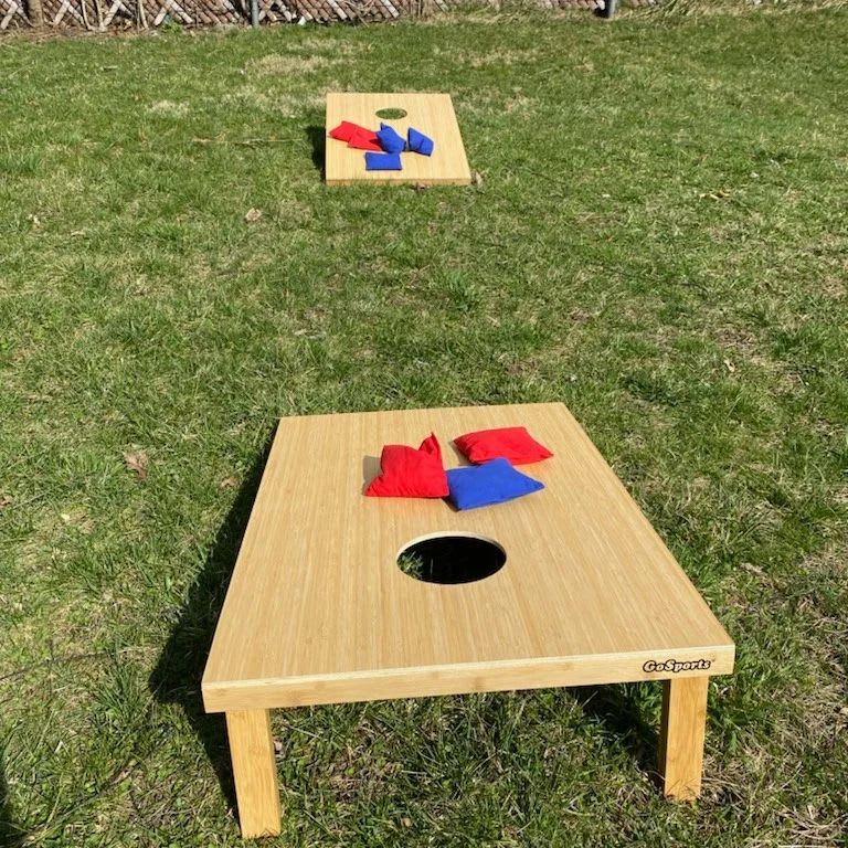 Rent this popular lawn game in which players take turns throwing bean bags at a raised board with a hole in its far end.